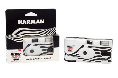 The Ilford XP2 Super 35mm Single Use Camera is an easy to use, fun, B+W film camera with the added convenience of C41 processing. The versatile, fine grain, ISO 400 film contained in this camera makes it suitable for most indoor and outdoor shooting situations, and is therefore ideal for parties, festivals, weddings, street photography, and outdoor events. It contains a built-in flash for low light shooting. Once used, the camera can be developed at any lab that offers C41 processing, or at home with C41 chemistry.